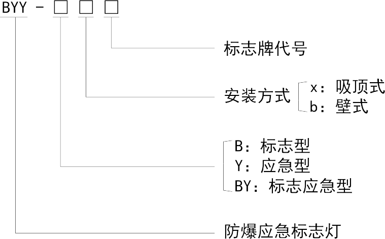 >按照產品型號規格說明逐條選擇并注明防爆標志,例如:需要防爆標志燈 1 型雙面 LED 式吸頂式安裝;則產品型號為 BYY-S2X1 ExdⅡBT6 Gb/DIP A20 TA,T6。