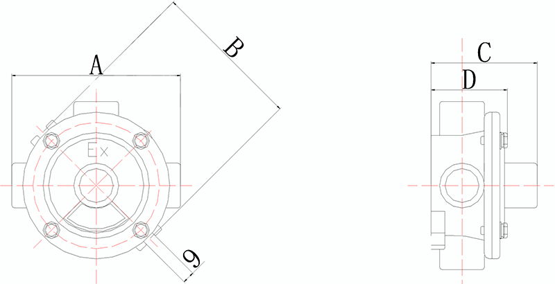 > BAH-G1/2″B 含義:BAH 防爆接線盒,管螺紋 G1/2″直二通平蓋。